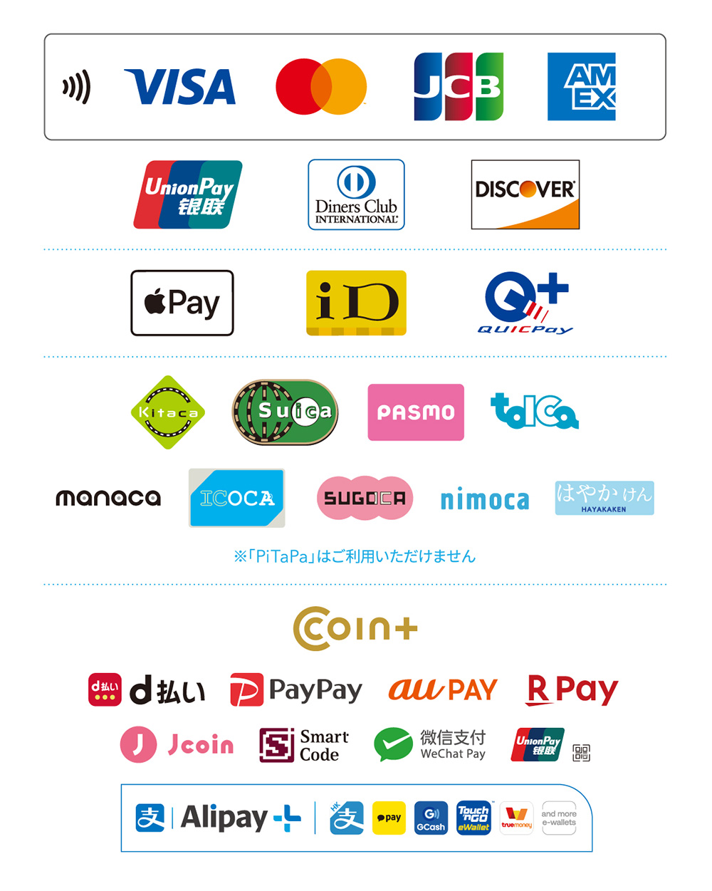 現金・クレジットカード・バーコード決済・交通系ICカード等、